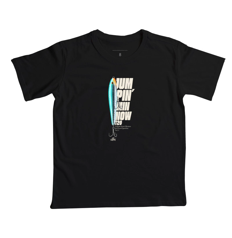 A estampa "Jumpin' Minnow T20 - ICPE" da Out Groove homenageia uma das iscas de superfície mais lendárias da pesca esportiva. Com uma ilustração detalhada e uma diagramação moderna e impactante, essa peça faz parte da coleção "Iscas Clássicas da Pesca Esportiva. Vol. 1". A Jumpin' Minnow T20 é conhecida pelo seu trabalho versátil, podendo ser utilizada como Zara, Stick ou Jumping Bait, imitando um peixe ferido ou uma presa em fuga. Esse nado irresistível provoca ataques explosivos de predadores de água doce e salgada, sendo altamente eficiente na pesca de Tucunaré (Açu, Azul, Amarelo), Robalo (Flecha e Peva), Traíra, Trairão, Dourado, Bicuda, Xaréu, Anchova, Black Bass, Cachorra, Pirapitinga e muitas outras espécies esportivas. Seja no rio, lago ou mar, essa estampa é perfeita para pescadores apaixonados que reconhecem o valor das grandes iscas clássicas!