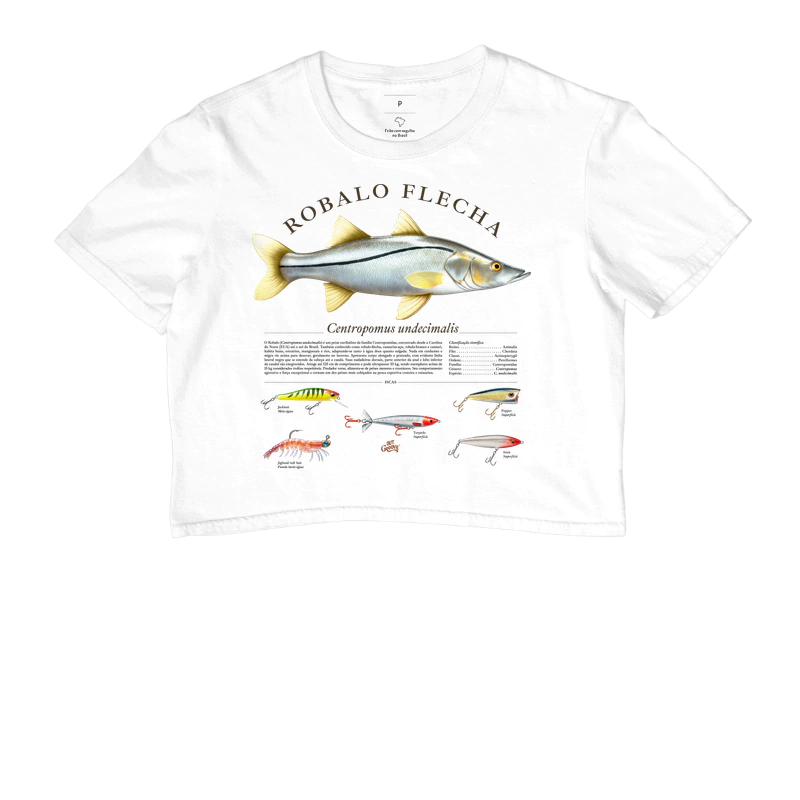 Estampa “ROBALO - Enciclopédia Style” da Out Groove, feita para os entusiastas da pesca esportiva. A arte traz detalhes do peixe Robalo (Centropomus undecimalis) e ilustrações de iscas como Zara, Jerkbait e Torpedo, além de informações científicas sobre o peixe, combinando estilo e conhecimento. Perfeita para quem aprecia os aspectos técnicos da pesca e a beleza dos peixes.
